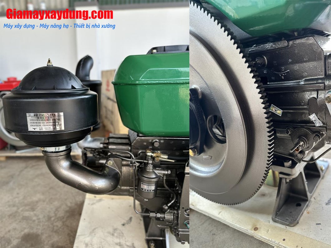- Toàn bộ khung máy được chế tạo bằng thép dày, sơn tĩnh điện chống ăn mòn, khối động cơ lớn, hệ thống làm mát bằng nước giúp máy giữ nhiệt độ ổn định kể cả khi hoạt động liên tục trong nhiều giờ liền.